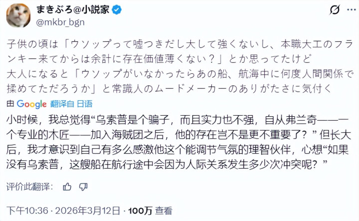 但长大以后再看《海贼王》,好多东谈主骤然会发现乌索普其实才是最像普通东谈主的变装。