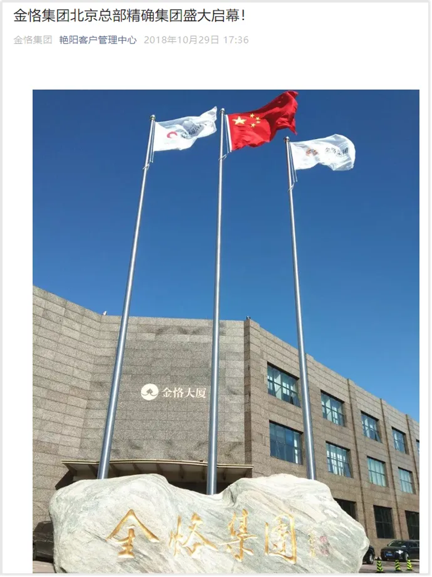 2018年,金恪在官微上发文称,金恪集团北京总部无际启幕。
