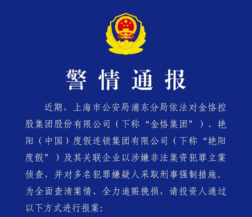 金恪集团、昭节度假偏激有关企业,涉嫌犯科集资,被立案侦察。