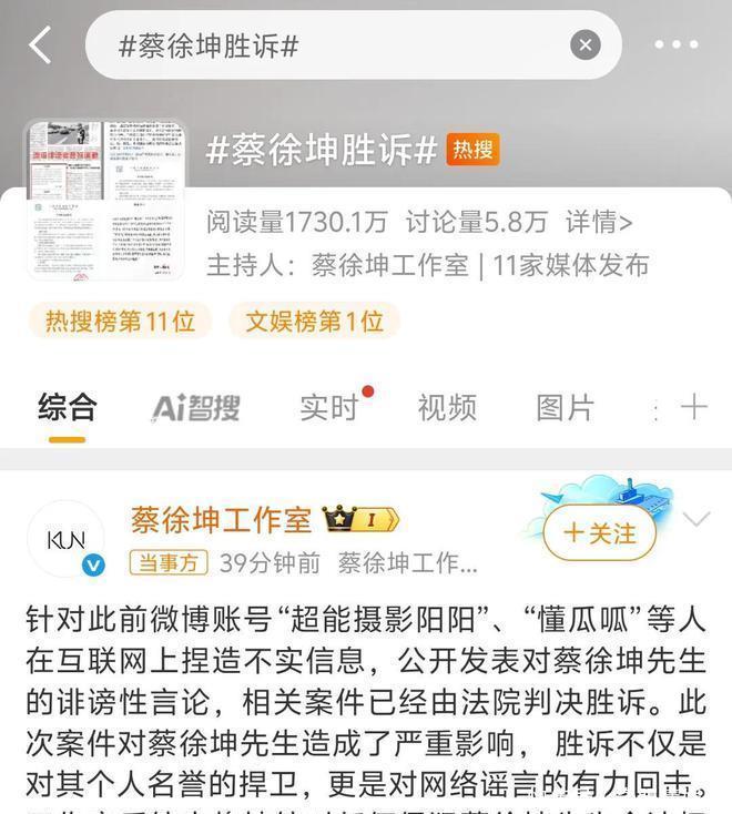 一醒觉来,就看见“蔡徐坤胜诉”的词条挂在热搜,乍一看到🦄九游娱乐(中国)网址在线,还有点懵