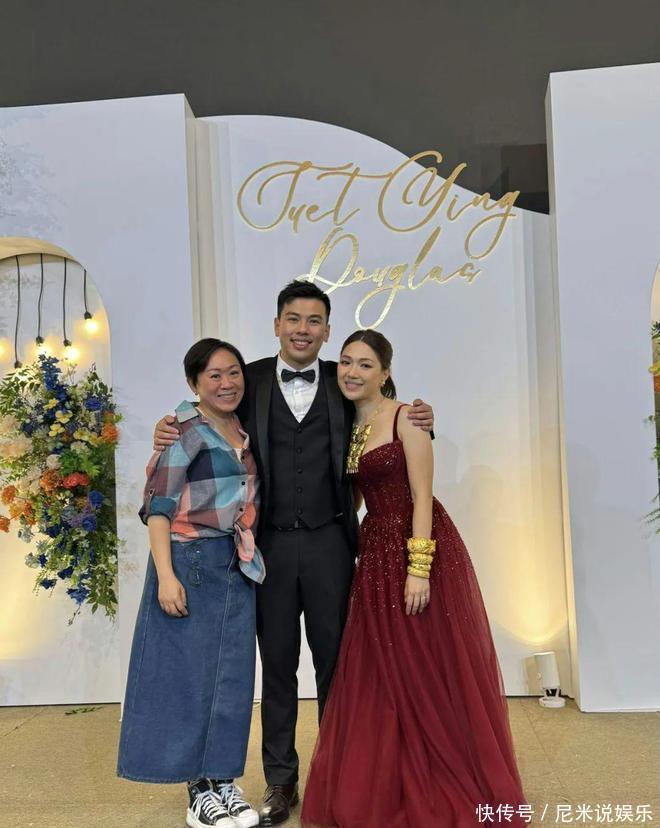 婚典移交的检朴温馨,会堂门外放了多张巨型婚纱照,新娘子则穿上露肩婚纱,与体态无垠的新郎哥十分般配,王祖蓝还新生的上台,站到一双新东谈主的中间,可见兄妹两个子一般高。