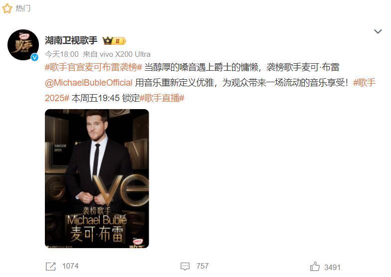 6月17日,《歌手2025》节目组官宣麦可·布雷成为“逆袭”歌手,提到这位歌手的名字,许多网友都感到尽头生分,但本色上他实力尽头强,手执5座格莱好意思奖,12项格莱好意思提名,《Feeling good》《Home》《I'll Be Home for Christmas》等歌曲都是他的代表作品。