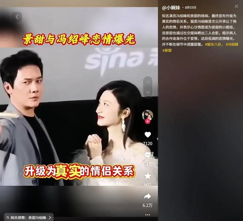 最离谱的是配图。有个视频把以前拍戏时冯绍峰教景甜甜骑马的镜头剪进去,说是婚后甘好意思互动。这俩东说念主在倏得事作过,平日调换齐能被编成绯闻,也太污辱东说念主了。