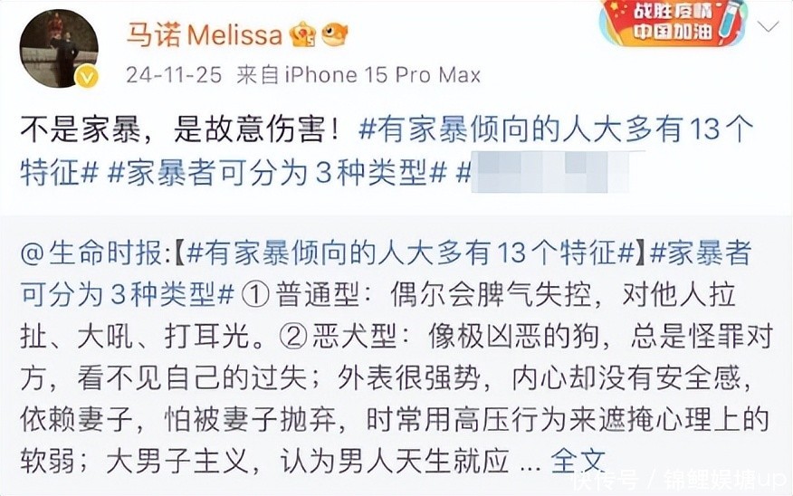 2024年11月在酬酢平台上转发对于家暴的新闻!