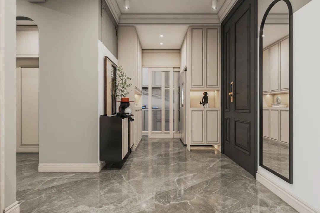 本案例呈现的是一套115㎡的轨范三居室。女业主对重生存满怀憧憬,不肯生存被管束。在绸缪上,以灰色与白色为主色调,无数应用护墙板和石膏线进行秘籍造型,营造出纵容且解放的家居氛围。